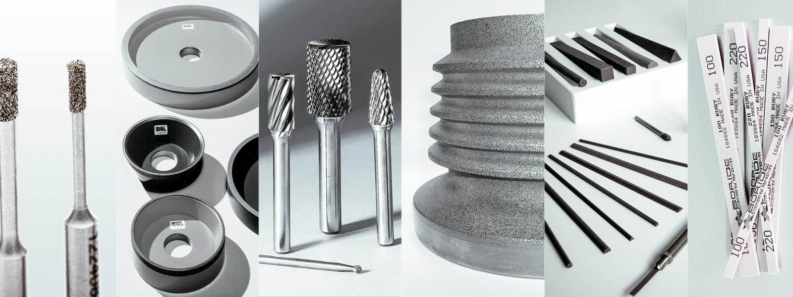 - Revente et consultation dans les outils industriels, comme les outils diamantés (meules diamantées et CBN, pâtes diamantées), les meules céramiques de rectification, les pierres de formage et d'affûtage, etc.