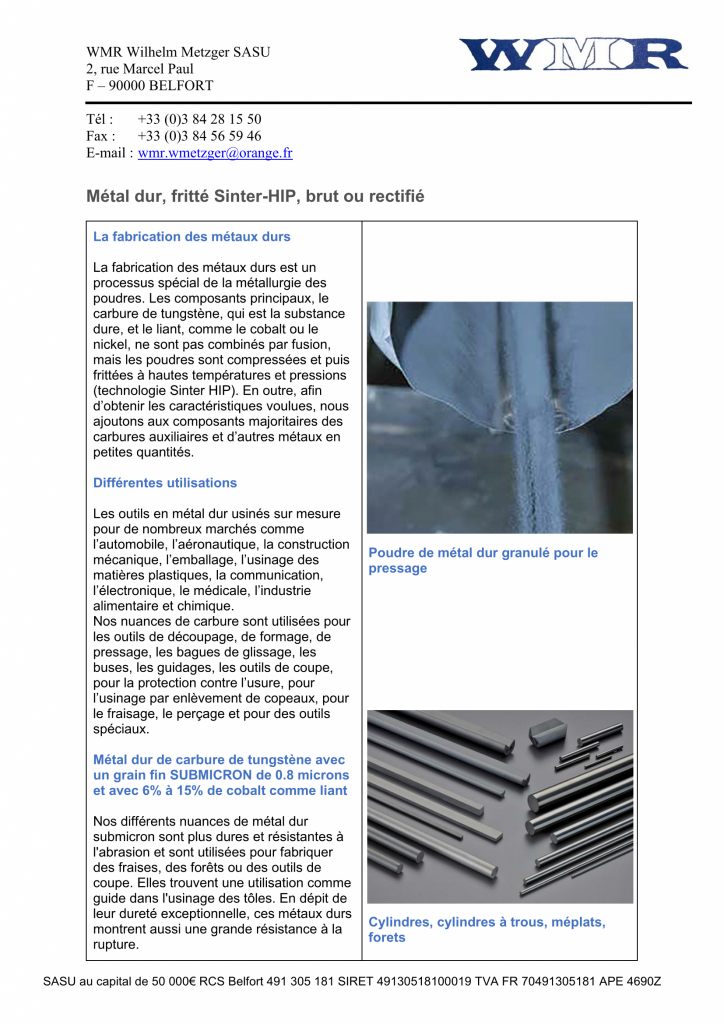 Métal dur WMC Sinterstar